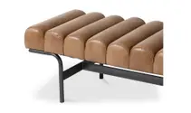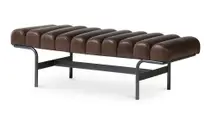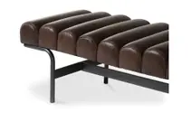 La banca tapizada en piel con base de metal, perfecta para cualquier espacio. Modelo Harrison, ideal para ottomanes, mesas de comedor, sofás seccionales y más. Su diseño elegante se adapta a oficinas y salones, ofreciendo confort y estilo. Ideal para complementar credenzas, sillas y mesas de centro, creando ambientes acogedores y modernos.